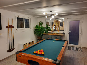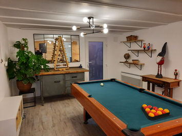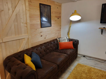 Ce sous-sol a été entièrement repensé pour créer un espace chaleureux et convivial pour accueillir une clientèle de gite, l'accumulation de bois brut, les meubles de métier et les quelques références à notre belle région Alsace lui confèrent des atouts indéniables par rapport à la concurrence.